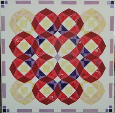 Barn quilts are fascinating artworks. Besides being so precise and so mathematical, the challenge is to create an exterior work of art that will hang for years in the elements. Now I work on various bases, not only wood, to lighten the art piece. Varying barn quilt sizes and designs is truly challenging.