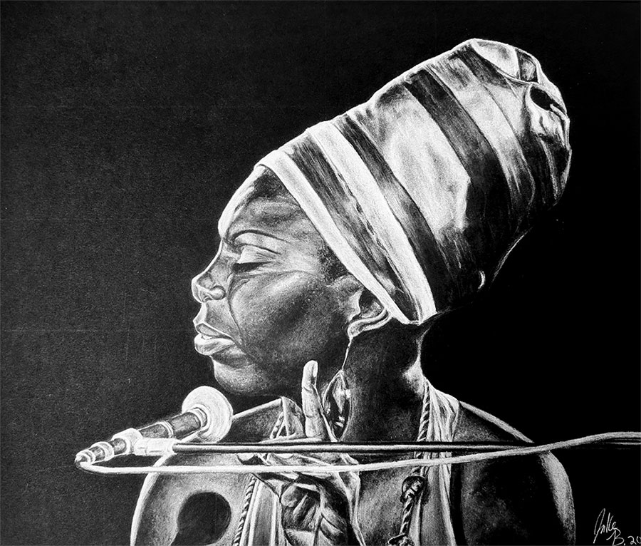 Jake enjoys working with the charcoal medium because of the contrast an artist can achieve and feels it is easier to control than other media. He says he has always enjoyed drawing but during the pandemic he taught himself how to draw and shade. His plans for the future are not quite certain but he is interested in becoming a teacher or a career in creative writing.”